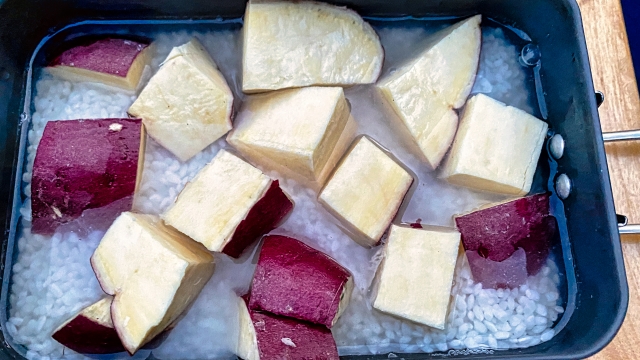 米1合に対して、さつまいもは100g程度が目安。